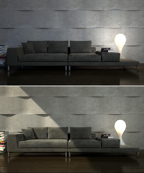 Жишээлбэл , хананд зориулсан, доошоо тусгалтай гэрлийг харааны түвшнээс дээгүүр байрлуулж, харааны түвшний хэмжээнд ямар нэгэн зураг ч юмуу аль эсвэл бэлэг дурсгалын зүйл байрлуулахад их тохиромжтой. Гэхдээ гэрэл хурц, тод байвал бараан өнгийн юм, гэрэл бүүдгэр байвал цайвар өнгийн юм их нийлэмжтэй байдаг. Аливаа юмсын өнгө нь гэрэлтүүлж байгаа чийдэнгийн байдлаас ихэд шалтгаална. Жишээ нь, гэрийн эзэгтэй таалагдсан ханын цаасаа сонгож аваад гэртээ нааж л дээ. Яг сайхан, нааж дуусаад байтал гэнэт нөгөөхийнх нь өнгө нэг л биш харагдаад явчихлаа. Наахын өмнө гоё харагдаад байсан чинь, наасны дараа шал дэмий харагдах чинь юу вэ гэх сэтгэл бишгүй л төрдөг дөө. Ай даа, энд л гэрэлтүүлгээ анзаарахаа мартав аа. Хэрвээ та хаалгаа будах будаг найруулах, ханандаа наах обой сонгох бол байгалийн гэрэлд, гэхдээ өдрийн нарны гэрэлд сонгож байгаарай. Гэрийн чинь ханын обой өрөөний тавилгатай авцалдахгүй бол гэрлээр зохицуулж болно. Аливаа эдлэхүүн материал болон хийцээсээ хамааран гэрэлд янз бүр харагддаг. Тухайлбал ердийн лампан гэрлэнд дулаан өнгөтэй юмс аятайхан харагддаг, харин нил ягаан, хөх өнгө бохир харагддаг. Мөнгөн усны чийдэнгийн гэрэлтэй өрөөнд байгаа улаан улбар шар зүйлүүд бараантаж саарал харагддаг бол натрийн чийдэн нь шар туяа цацруулдаг учраас шар өнгө ямарваа гажилтгүй, цэвэр харагддаг. Ер нь бүх зохиомол гэрэлтүүлгээс өнгөтэй хамгийн сайн авалцдаг, өнгийг гажилтгүй харуулдаг гэрэл бол өдрийн гэрэл юм. Мөн гэрлийн бүрхүүлээс шалтгаалан эдлэхүүний өнгө өөр өөр болдог. Шар туяатай гэрэлтүүлэгтэй газар шар зүйл тод, хөх цайвар, цэнхэр өнгөтэй зүйл ногоон ч юм шиг, улаан өнгө тодорч, цагаан өнгө шаргал болдог. Харин ягаан өнгө их бохир харагддаг. Хэд хэдэн өнгө өөртөө агуулсан, эсвэл гялгар гөлгөр гадаргуутай эдлэлд гэрэл шууд тусвал өнгө нь эрс ялгарч харагдахаас гадна гялгар гадаргуу орчин тойронд байгаа өөр өнгийг өөртөө ойлгож идэвхтэй, хөгжилтэй байдал үүсгэдэг.